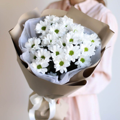 Белые ромашковые хризантемы с оформлением
